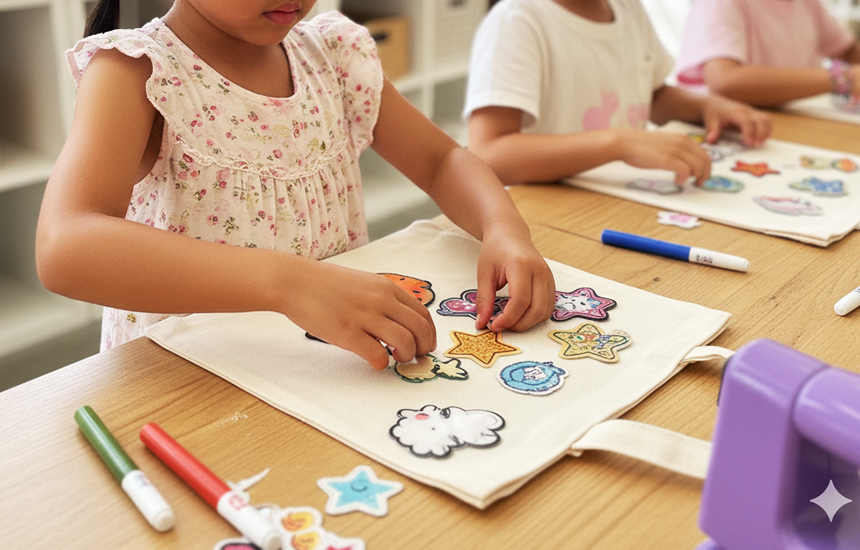 たくさんのパッチの中から、自分の好きな形や色を選んでぺたぺた。組み合わせ次第で、まったく新しいデザインが生まれます。小さな実験室のように、想像力をひらく時間。貼って、つくる。その手の中で“わたしだけ”ができあがります。